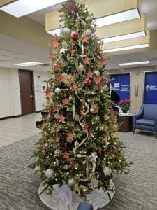 I bring up Christmas trees for a couple of reasons. The Foundation supports multiple Christmas trees, one outside, one in our Hospital lobby and one in our Outpatient Treatment Center lobby. We decorate the one on the outside to remind us that even at a hospital — where almost no one would prefer to be at the holidays — there is always help and hope and community.
