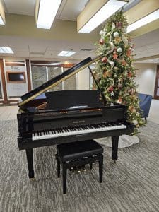 I am mentioning music as therapy because I want you to think for a moment about what is therapeutic and, more importantly, about what therapy can be. The Baby Grand piano the Foundation purchased for the lobby plays itself to provide a soothing background of music. It brings GVMH employees together to sing carols and to hear our own communities’ pianists willing to share their talent.